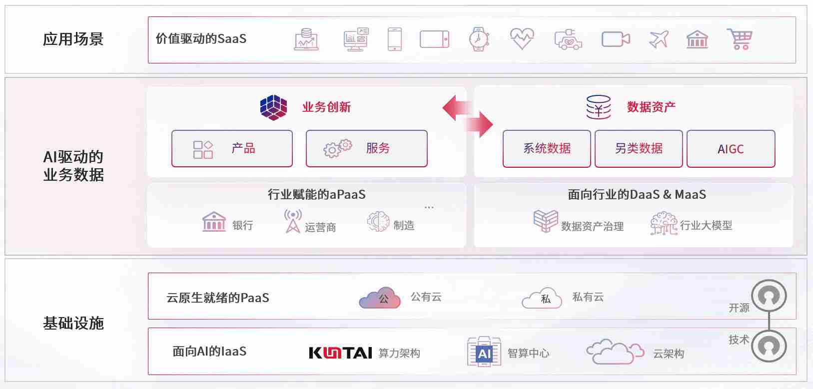 数字时代,,,围绕企业数字化转型的关键要素,,,,z6com·尊龙凯时数码开创性的提出数云融合战略和技术体系框架,,着力在云原生、、、、数字原生、、、AI原生和信创产业上架构产品和服务能力,,,,为处在不同数字化转型阶段的快消零售、、、、汽车、、、、金融、、、医疗、、、、政企、、、教育、、、、运营商等行业客户提供泛在的敏捷IT能力和融合的数据驱动能力,,,构建跨界融合创新的数字业务场景和新业务模式,,助力企业级客户建立面向未来的核心能力和竞争优势,,,全面推动社会的数字化、、智能化转型升级。。。。