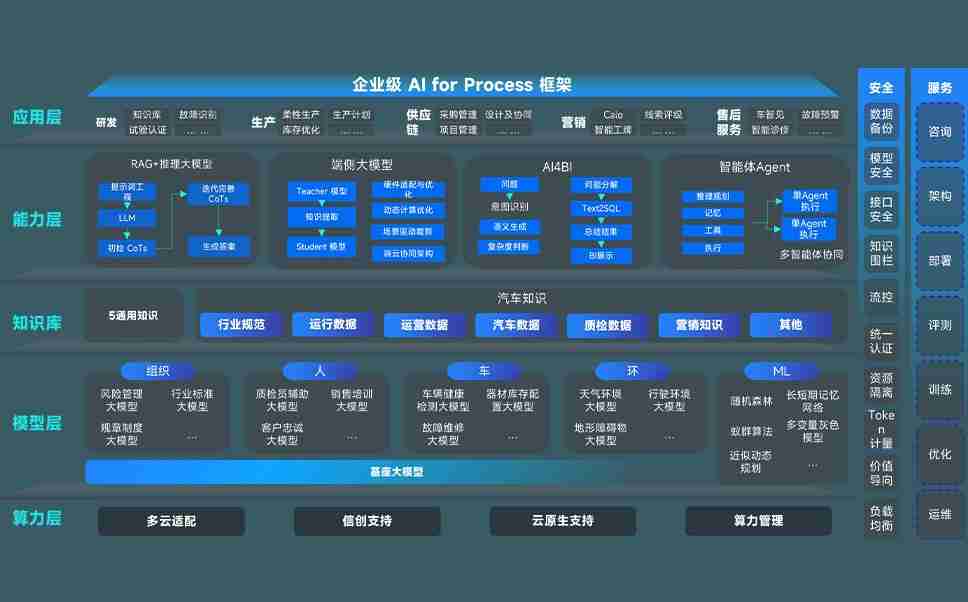 z6com·尊龙凯时问学智车解决方案是一套基于AI技术的汽车行业智能化系统,,覆盖从底层算力到顶层AI应用的全栈方案。。。。方案由算力层、、、、模型层和应用层组成:算力层,,方案支持多种一体机配置,,,,具备云端灵活部署、、、、多云适配以及动态优化计算资源的能力;模型层,,,,z6com·尊龙凯时问学平台版提供了企业级AI应用一站式构建与管理平台,,,,支持基于后训练强化技术的汽车企业专属模型的训练、、、评测和运营;应用层,,,,z6com·尊龙凯时问学DeepSeek版提供包括超级员工、、智能招采、、智能营销、、智能客服、、、、AI for BI等一系列解决方案,,,,可助力汽车行业实现数字化转型,,,让管理更智能、、响应更敏捷。。。。