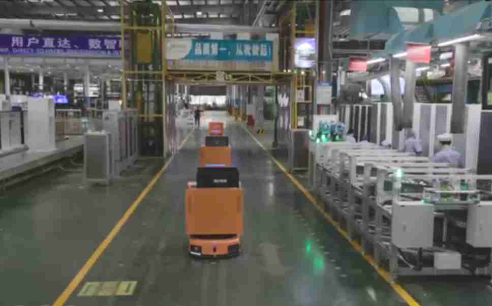 为车载冰箱物流配送打造的智能解决方案,,,包含产中物流通过潜伏举升AMR搬运至线边,,,,产后成品物流智能仓储,,,流程包含产中物流智能齐套入库,,,线边安灯叫料AMR智能配送至线边,,,成品入库、、、出库,,通过无人堆高车机器人,,,,智能仓储管理替代人工作业管理,,,实现更高存储、、、、更高效率、、、更具柔性化的解决方案。。。